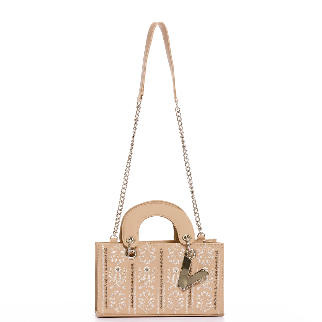 Elegancia que florece con cada detalle. Inspirada en la esencia de la feminidad, la cartera España mini combina la delicadeza de los bordados con la fuerza del diseño contemporáneo. Cada hilo de plata que la adorna cuenta una historia de elegancia, cuidado y sofisticación. Su tono suave y sus acabados metálicos reflejan la luz con sutileza, haciendo de esta pieza un símbolo de belleza atemporal.