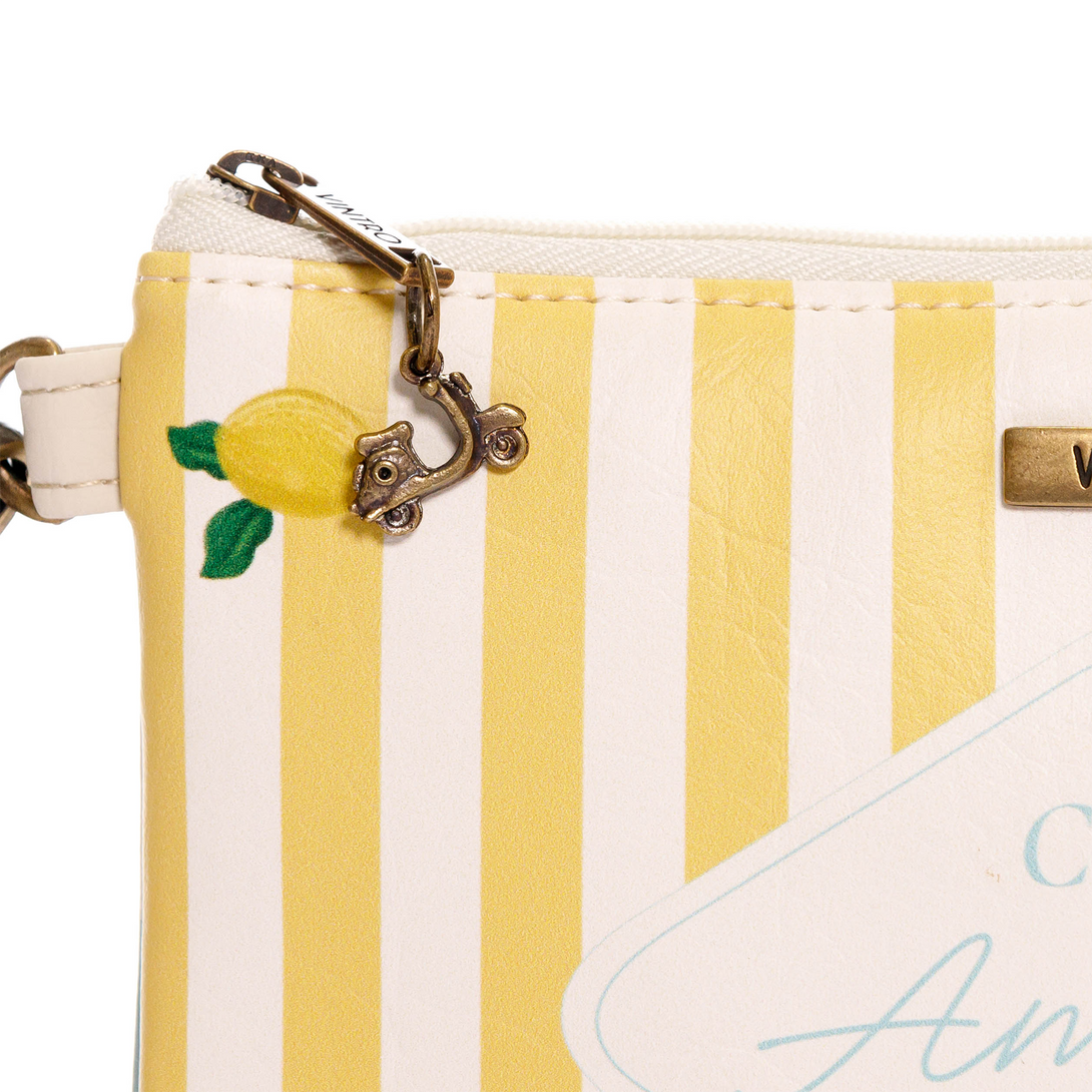 La cosmetiquera Ruanda es un básico infaltable para llevar tus esenciales con estilo. Inspirada en Italia y en la frescura del clásico limoncello, su diseño sencillo y funcional se complementa con un encantador dije de vespa. Perfecta para acompañarte en cualquier momento del día.