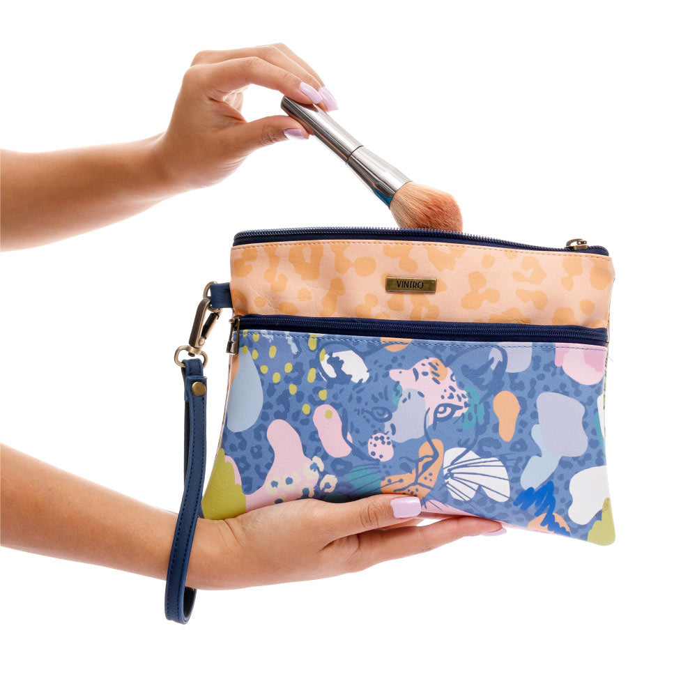 COSMETIQUERA PARA MUJER TOGO AZUL EN CUERO VEGANO CON PULSERA