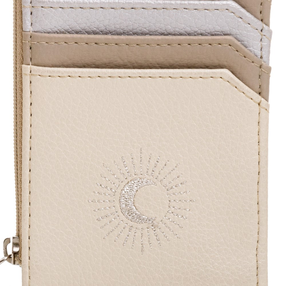 Si te gusta llevar un bolso pequeño o quieres salir solo con algo que quepa en tu bolsillo, este porta documento es ideal para tus ID y tarjetas. Estampado en la colección Magia. 6 compartimentos, cierre con espacio para usar de monedero y una cómoda pulsera par sujetar en la mano 100% cuero vegano.